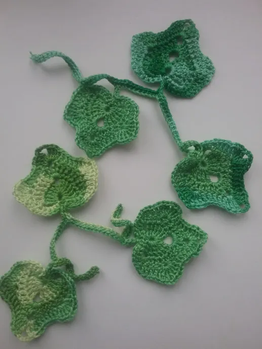 Вот такие милые листочки для любительниц повязать крючком. Этот мотив ирландского кружева, станет дополнением к вашей кофточки или салфетки. Вяжется очень просто, что не мало важно для начинающих мастериц.