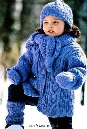 На спицы №4,5 двойной нитью набрать 36п. и связать 12р. резинкой, равномерно прибавив в последнем ряду 6п. Затем петли распределить следующим образом: 1кром., 14п. полупатентной резинки, 22п. рельефного узора 2, 4п. полупатентной резинки, 1кром. Выполнить пройму с правой стороны, как на спинке. Через 18р. от начала проймы закрыть для выреза горловины с левой стороны 7п. и в каждом 2-м р. 1х3п., 2х2п. и 2х1п. На высоте спинки оставшиеся 20п. закрыть.