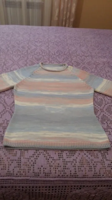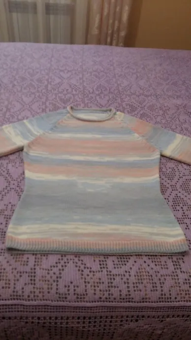 Предлагаю вашему вниманию очередной пуловер с рукавами реглан (повторение пройденного). Связан на вязальной машине по тому же принципу, что и себе.
