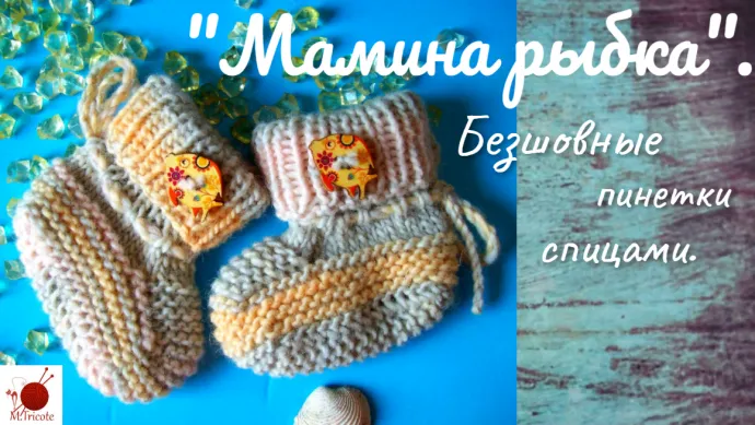 Безшовные пинетки"МАМИНА РЫБКА".Спицами.