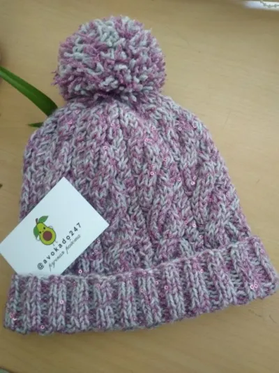 Здравствуйте, мастерицы. Связала новую шапку. Получилась на окружность головы 55-56 см. Резинка 2 на 2 (круговые спицы № 3,5. трос 40 см), основное полотно спицами № 5. Узор коса + жгут на 10 петель.
