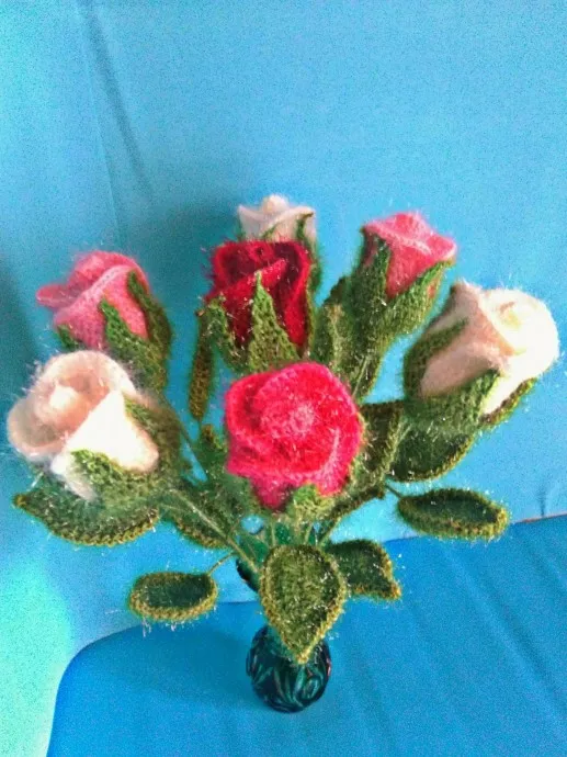 Розы связаны крючком. Высота 45 см.