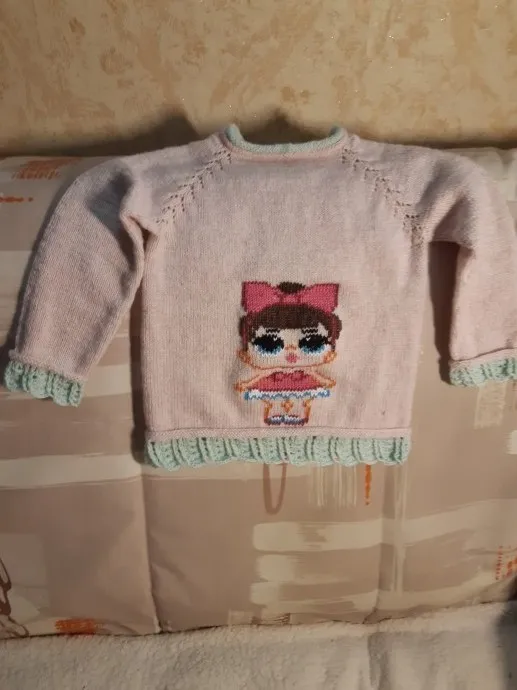 Пряжа норка, отделка вышивка по вязаному полотну.