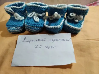 Успеваю вязать мелкое и тёплое, пока у меня дозревает фантазия, как связать ещё одну вещь в подарок к пинеточкам.