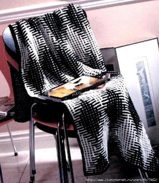 Двухцветное одеяло спицами выполнено очень интересным узором в виде ромбов. Такой цветной узор вяжется по схеме, приведенной в описании. Подобная фактура достигается за счет снятых петель в узоре. Брутально и эффектно такой цветной узор со снятыми петлями смотрится в сочетании белого и черного . Если Вы не знаете, что подарить своему любимому мужчине, то такое двухцветное одеяло наверняка произведет впечатление и порадует его.