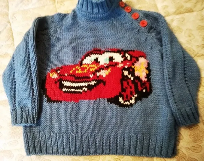 Какой шикарный свитерок!!! Мне очень понравился! У меня внук «болен» машинами. Не могли бы вы выложить схему машинки?