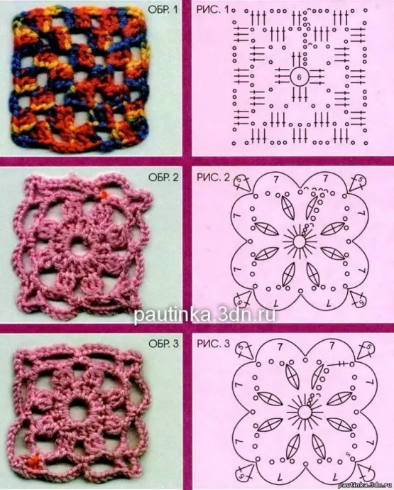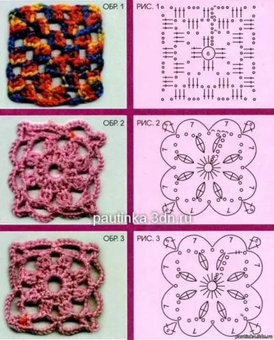 Вязание крючком квадратных мотивов