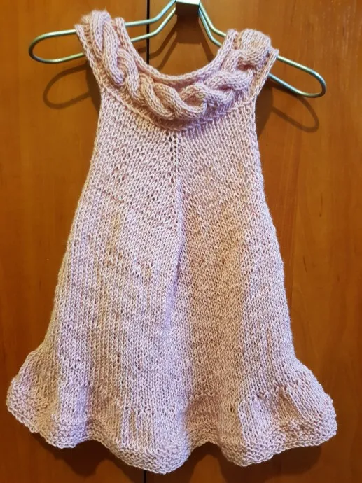 Хочу показать Вам сарафанчик, связанный для девочки 3-х лет. Вязала в две нити из пряжи Mars 85% акрила и 15%полиамида , цвет пыльная роза №00152 , 100 гр - 700 м , спицы № 3,5 мм, расход 87 гр. Пряжа мягкая, слегка пушистая и совсем не колючая.