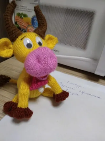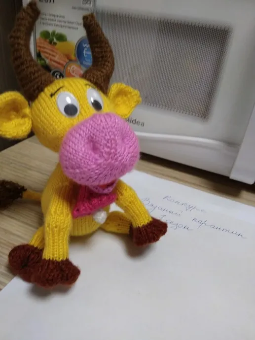Замечательный бычок! Серьезные рожки, сильный хвост — пусть скорее прогонит мышь в короне! Спасибо тебе за показ!