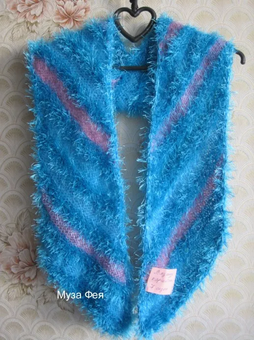 Шарфик в косую полоску связан на спицах из остатков мохера Ализе, Камтекс, кид-мохера и травки. Длина шарфа - 150см. ширина - 17см.