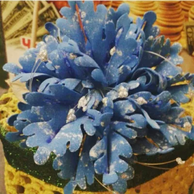 Девочки усиленно готовятся к наступлению Нового года, выкладывают свои прекрасные работы. И вот смотрела я смотрела, завидовала, завидовала и решила отложить свое вязание на один вечерок и взяться за фоамиран. долго не думала, глядя на его цвет (а достала я его их своих запасов) решила что это будут снежинки.
