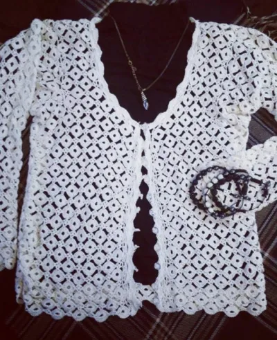К сожалению от самой кофточки у меня остались только воспоминания и одно фото. Посетила меня супруга брата и отжала кофточку.