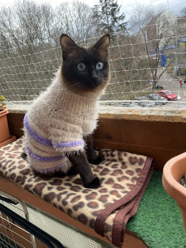 Нашему нравится даже, если в свитере может долго на балконе сидеть, а «голышом» быстро замерзает и потом по квартире носится, чтобы согреться.