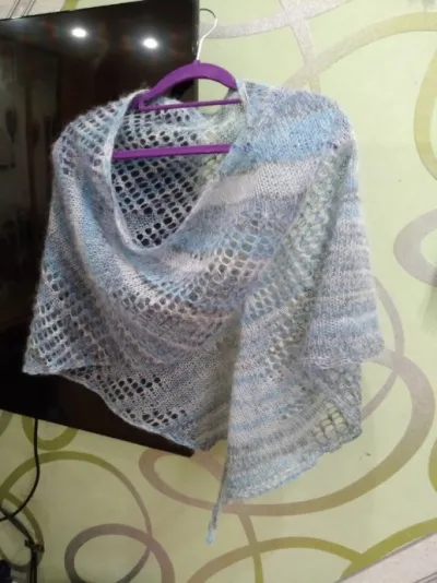 Вот и моя шаль "Бессонница". Временные условия совместника совпали с 7-м сезоном Вязаного карантина. Мне повезло