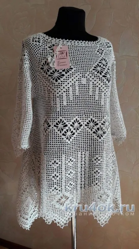 Доброй ночи всем! По крайней мере, у меня ночь. Связала по мотивам туники "Шоколадница", "Белоснежка" Елены Саенко. От себя добавила в изделие бисер. Пряжа Пехорка цветное кружево, цвет мокко, 50 г 475 м. Расход 5 моточков. Крючок 1,25