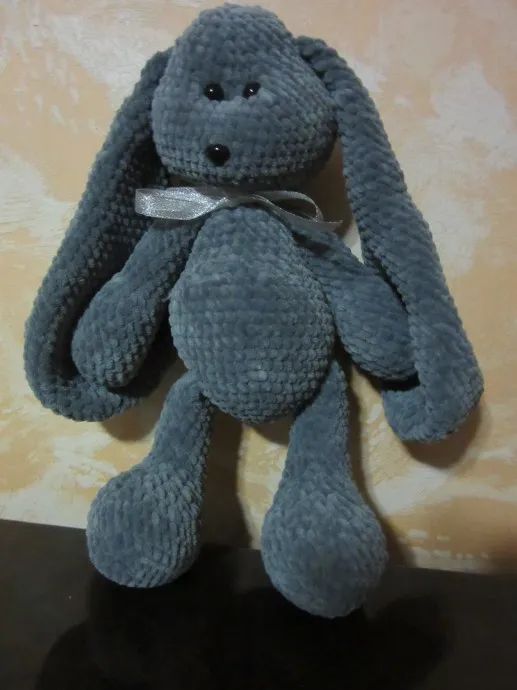 Связала ещё одного зайку. Теперь он у меня серый плюшевый. Зайка связан для ещё одного внука.