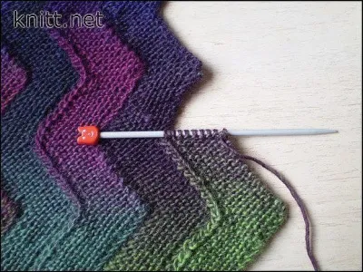 Полоски соединяются по мере вязания без сшивания, в результате получается двухстороннее полотно. Каждая полоса может быть связана из другой пряжи, что позволяет использовать остатки пряжи. 1 рубчик = 2 ряда платочной вязки (все лиц). 1 Зиг + 1 Заг = зигзаг Зиги вяжутся прибавлением петель. Заги вяжутся убавлением петель. Периодически проверяйте число петель — в конце рубчика всегда должно быть 10 п.