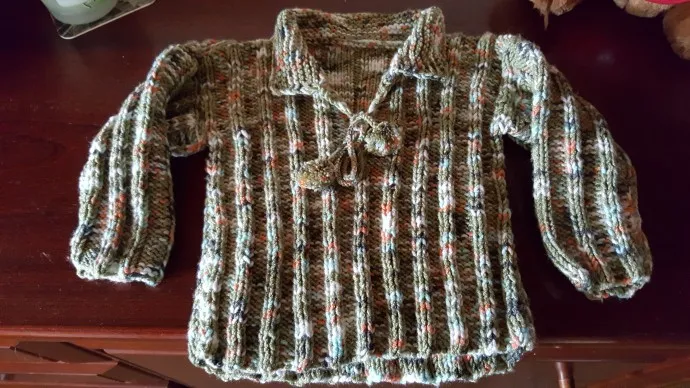 Джемпер внуку связан лицевой гладью, интересен за счет окраса нитки