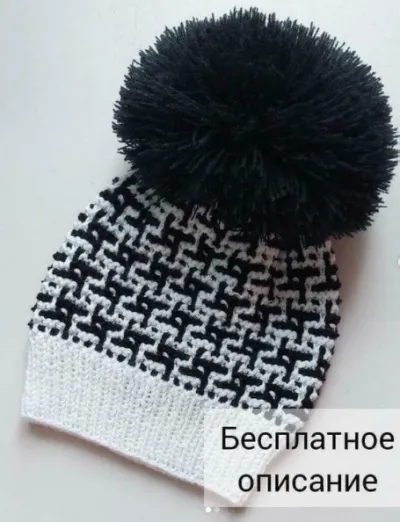 Шапочка готова. Проводим ВТО , сушим на горизонтальной поверхности и дополняем помпоном на своё усмотрение. У меня помпон из пряжи , сделанный своими руками.