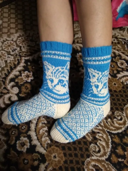 Жаккард моя слабость и ничего я с этим поделать не могу. Увидела в интернете красивую схему котиков, не удержалась и связала носки. На вязание ушел один день, так увлеклась, что не смогла остановиться