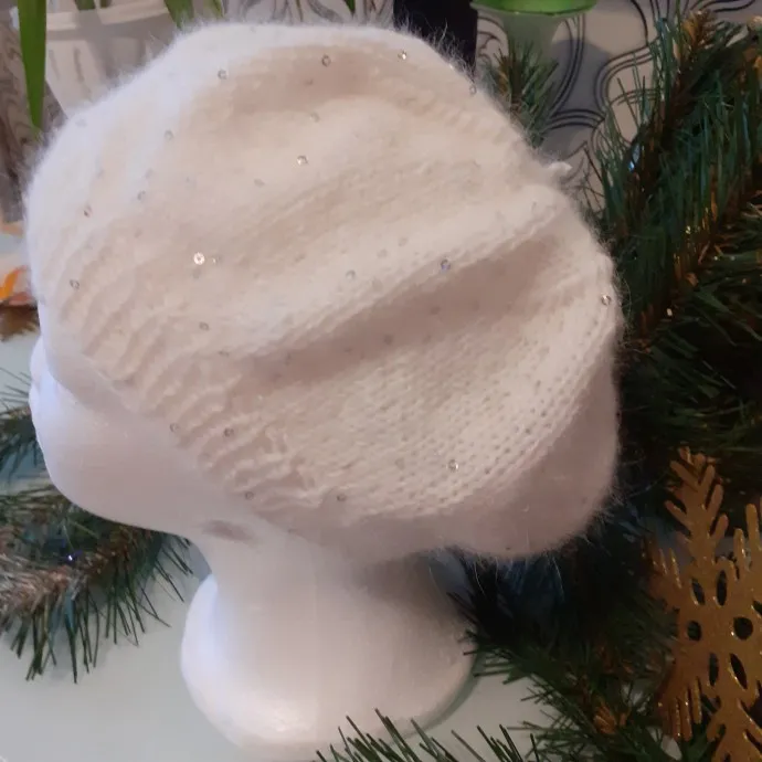 Время до Нового года.остается все меньше. Если вы ещё не успели купить подарок. То такой простой берет с пайетками,может им стать.Удачного просмотра.С наступающим праздником.