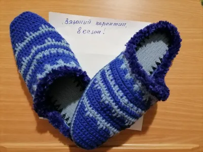 Здравствуйте дорогие рукодельницы! А у меня опять тапочки! На этот раз последние в этом году. Эти для зятя связала... Думаю понравятся.