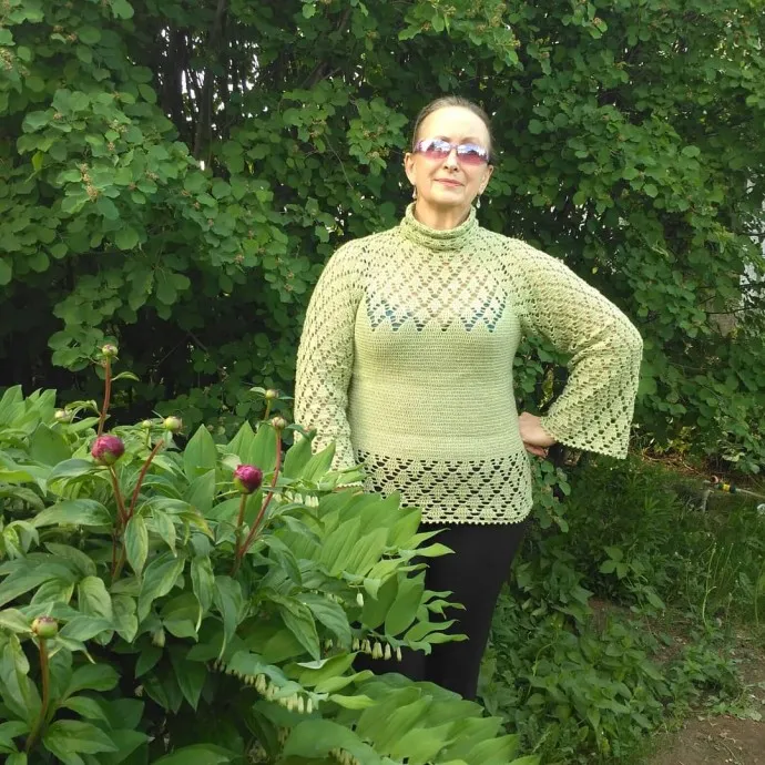 Замечательный гольф!!! Вот не умею я вязать крючком к сожалению… Лена, сидит прекрасно.И очень воздушно и нежно