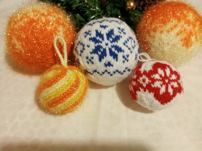 Вяжем вместе новогодние шары спицами по схеме и описанию
