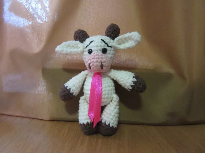 Этот бычок связан по МК Виктории Малиночка из пряжи Alize Cotton Gold . 55% - хлопок, 45% - акрил. В 100 г - 330 м.