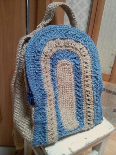 Не вязала рюкзаки, .Первый блин. Связан из джута, крючок 4. с замочком, с подкладом.