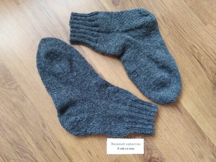 У меня трое мужиков в доме, по опыту знаю, что для мужчин носочки нужны повыше. Если бы резиночку чуть выше связали или место от резинки до пятки, было бы совсем замечательно. Штаны заправляются в такие носки крепко и надолго. Желаю успешного вязаного карантина!