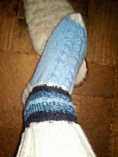 На фото моя нога в носке, но носки еще не стираны после вязки, пряжа еще не "поженилась"))) Сорри.