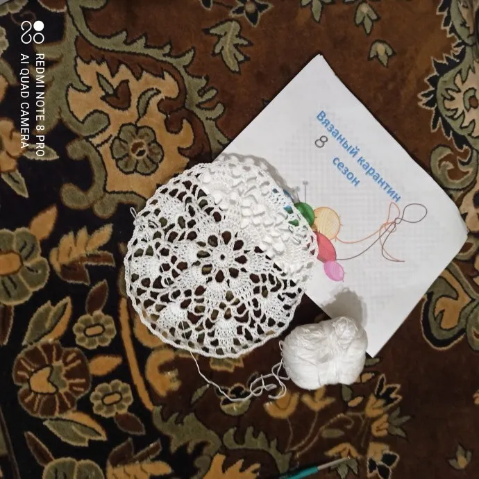 Сижу в ожидании посылки с пряжей и ликвидирую остаточки. Пряжа какой-то хлопок, вроде, Пехорка ажурная, крючок 1,0 мм. В край полей ввязано две нити регилина