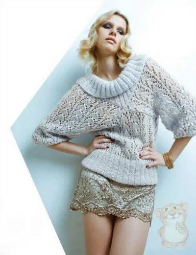 Шикарный оригинальный свитер для молодой стройной женщины, юбка тоже красивая.Поздравляю автора с прекрасной работой.