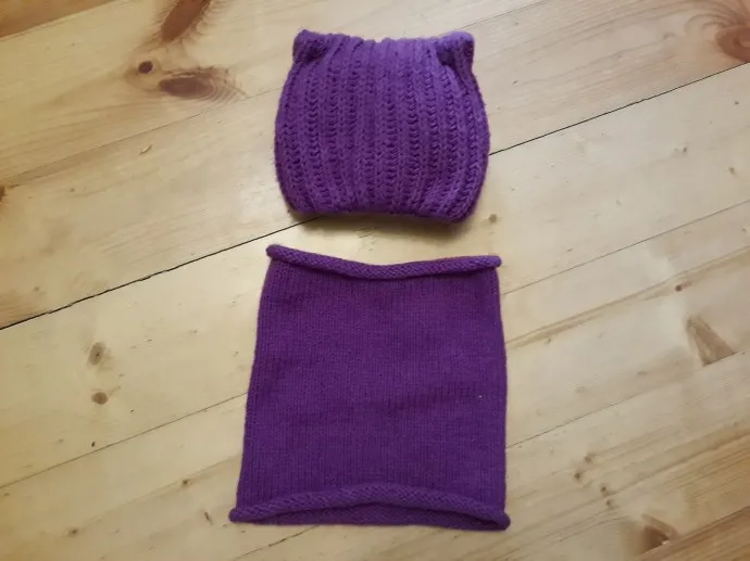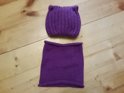 Этот комплект я вязала года три назад, шапка английской резинкой, внутрь отворот, сзади шов. Нитки я думаю, Ализе. Более точно не скажу. Но ребенок вырос, шапка и варежки малы, поэтому из этого комплекта получился другой. Перед тем, как распустить сфотографировала))