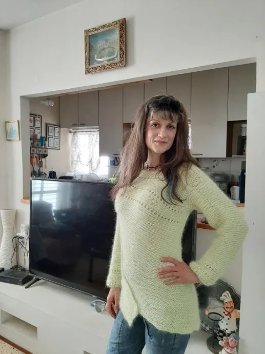 Всем привет!!!!! Готова моя работа и сейчас вручила подруге. Неделю вязала чихая и выплевывая летящий пух якобы норки.... Вязала в 2нити вдвумя цветами-молочно-белым и салатным(нитка с дополнительной нитью для стабилизации) на спицах №5 .Получился очень нежный мягкий и пушистый. Всем здоровья и успехов!!!