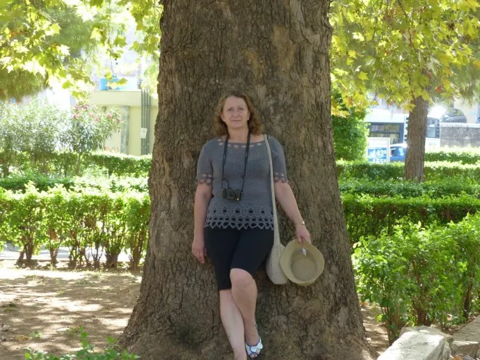 Рукава: вяжите по направлению сверху вниз. Начинайте с 12 «галочек» и далее вяжите 25 рядов, прибавляя по 1 «галочке» в каждом 2-м ряду. Закончите вязание рукава каймой по схеме 4.