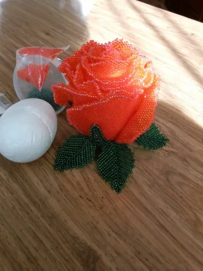 Оплела яйцо мозаичным плетением.Лепестки в той же технике.А чашелистик и листья - ндебеле.