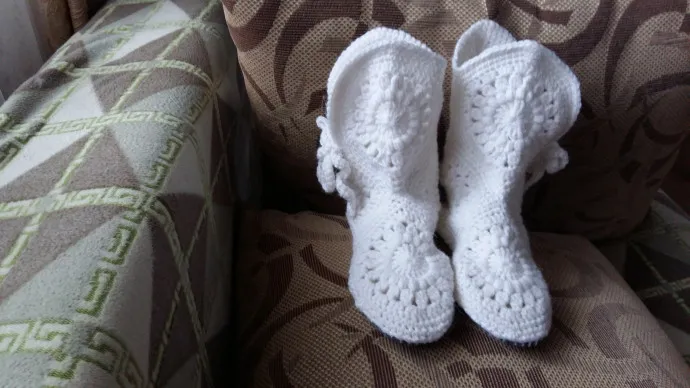 Сапожки "бабушкиным квадратом"
