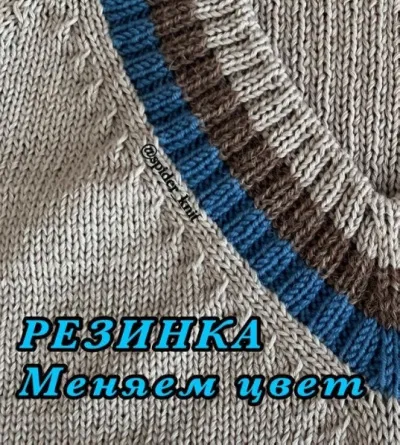 Показав Вам в сторис связанную горловину, получила вопрос о том, как сделать такие ровные полоски при переходе цветов в резинке (в изнаночных дорожках не видно стыка двух цветов).