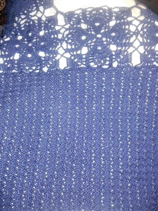 Предлагаю вам ажурную кофточку в процессе вязания из тонкой бобинной итальянской пряжи: 1 нить хлопок ( 1000м в 100граммах) + 1 нить вискоза (1500м в 100 граммах). Крючки № 2 мотивы и верх полотна, №2,5 полотно от груди. При желании можно использовать и отдельно в изделиях только мотивы или полотно, узор которого простейший, вяжется как по маслу и при этом имеет шикарный вид плотных ажурных дорожек, так необходимый в наших летних изделиях, где нежелательна дырчавость. В планах мотивы - это кокетка и рукава 3\4 или чуть короче, как лягут мотивы.