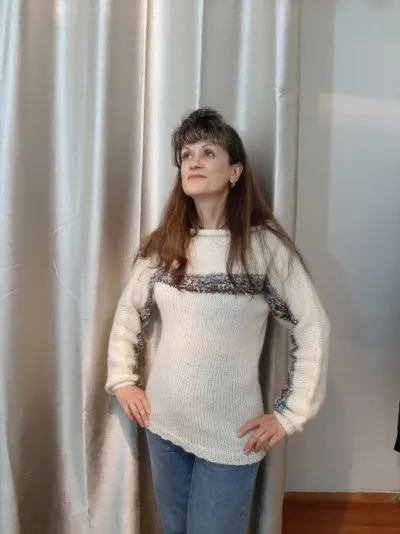 Приветствую всех дорогих мастериц!Представляю свою работу-свитер Тара.Связан из Ализе Реал 40 Плюс(60%акрил и40% шерсть) на спицах №6.Ушло 5 мотков по 100г.длина нити 225м.Свитер пушистый ,мягкий, теплый с полосой в рубчик из пряжи Ария. Рукав "летучая мышь". Думаю дочке понравится.Всем здоровья и творческих успехов!