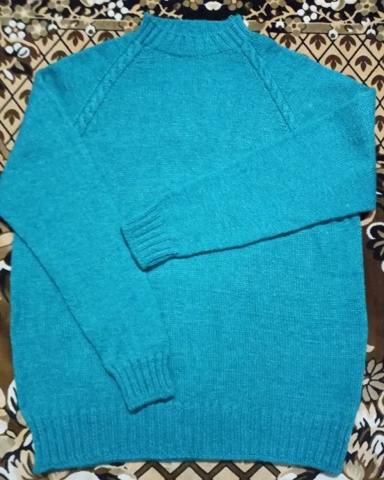 Наконец-то дошли руки и до себя! Связала джемпер "Изумрудный" с заниженной линией реглана.