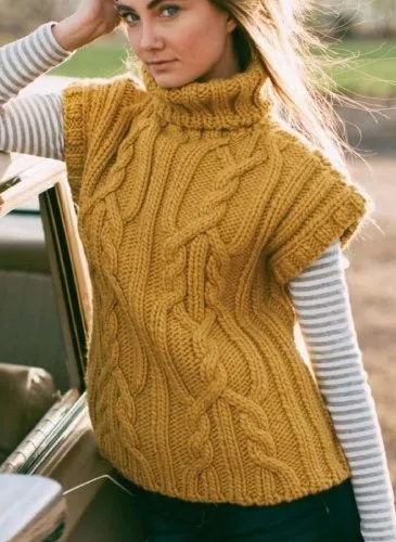 Пряжа Sugar Bush Yarns Chill (100% шерсть; 48 м/100 г) – 1100 (1300, 1400, 1600, 1700) г желтого цвета (#1004 Yukon gold), круговые спицы № 6.5 mm и № 8 mm; спицы № 5.5 mm.