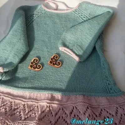 Дано - итальянский хлопок= кашемир (90/10 ). После раздумий, родилась такая туничка для девчушки 3, 5 лет. Вязать- не сложно, результат радует)))))
