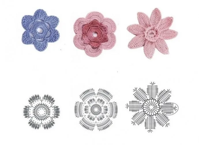 Простые цветочные мотивы крючком схемы для вязания