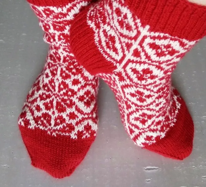 Доброго времени суток, дорогие коллеги! Вот и весна пришла. Отопление отключают, ножкам становится холодно. Вот такие носочки связала для дома вместо тапочек (дочка не любит тапки). Пряжа - супервош от ализе, 420м/100г. Носочки по мотиву носков Hope socks от Катарины Дуден. Жаккард спицами №2,5, остальное - №2. Пряжа - мечта, мягкая, теплая, носочки получились не грубые, удобные.