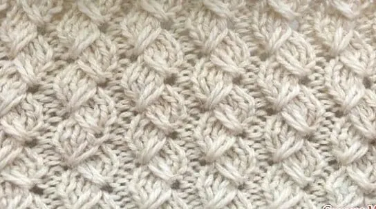 9 ряд - (лиц. сторона) кром., 1 изн., *2 лиц., затем спицу вводим на 4 ряда ниже рядом с изн.петлей, провязываем вытянутую петлю, одеваем её на левую спицу и провязываем вместе с 1 лиц. петлёй *изн., кром.