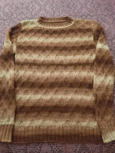 От прошлой работы осталась у меня Испанская пряжа Katia BOMBAY - 100% мерсеризованный меланжевый хлопок (100гр/230м). И достаточно много (650гр.). Решила применить его на мужскую модель. Связан спицами N 3. Хватило на размер 56 (в самый раз зятю).