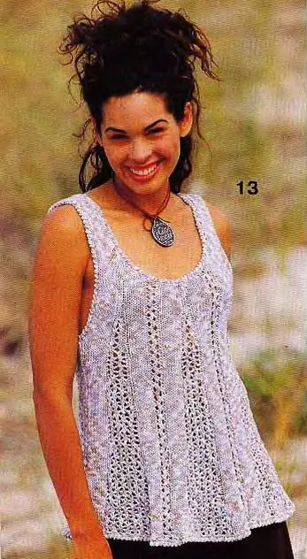 Расширенный книзу топ из меланжевой пряжи, связанный спицами